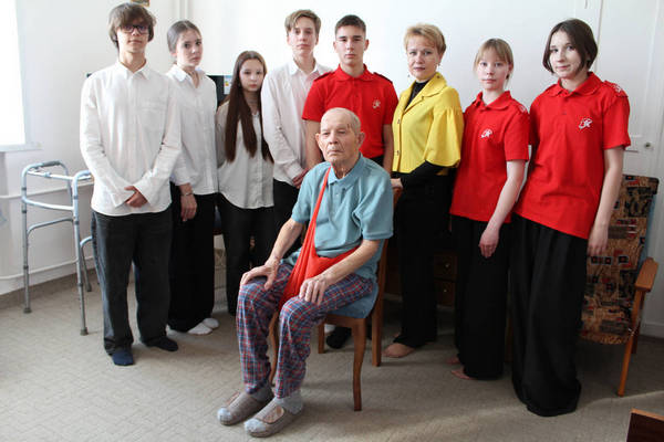 Юнармейцы гимназии пожелали ветерану крепкого здоровья, чтобы каждый день проходил в окружении любящих и дорогих людей.